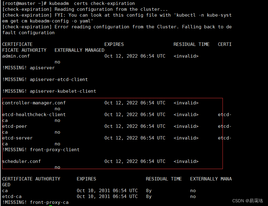 关键错误:part of the existing bootstrap client certificate in /etc/kubernetes/kubelet.conf is expired: 2022-10-12 06:54:16 +0000 UTC