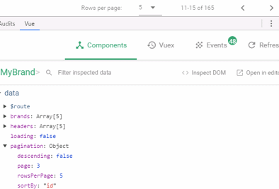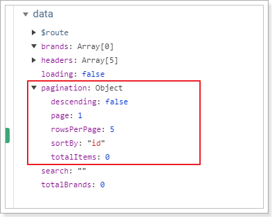 虽然点击分页,不会发起请求,但是通过浏览器工具查看,会发现pagination对象的属性一直在变化:
